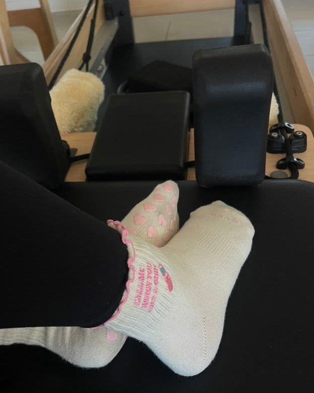 Hear me out, I will fully wear these to pilates but am obsessed with wearing them around the house because they are just cute and make me feel good to be looking so cute. I've never worn grip socks around the house before but ngl these are the best and i am living in them.