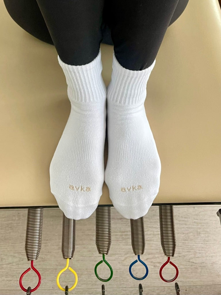 These are my favorite Pilates socks EVER. I truly feel like wearing them makes my workout even better. Very grippy bottoms, and such a cute, unique design. I receive so many compliments when I wear them!! Can’t get enough of AVKA!