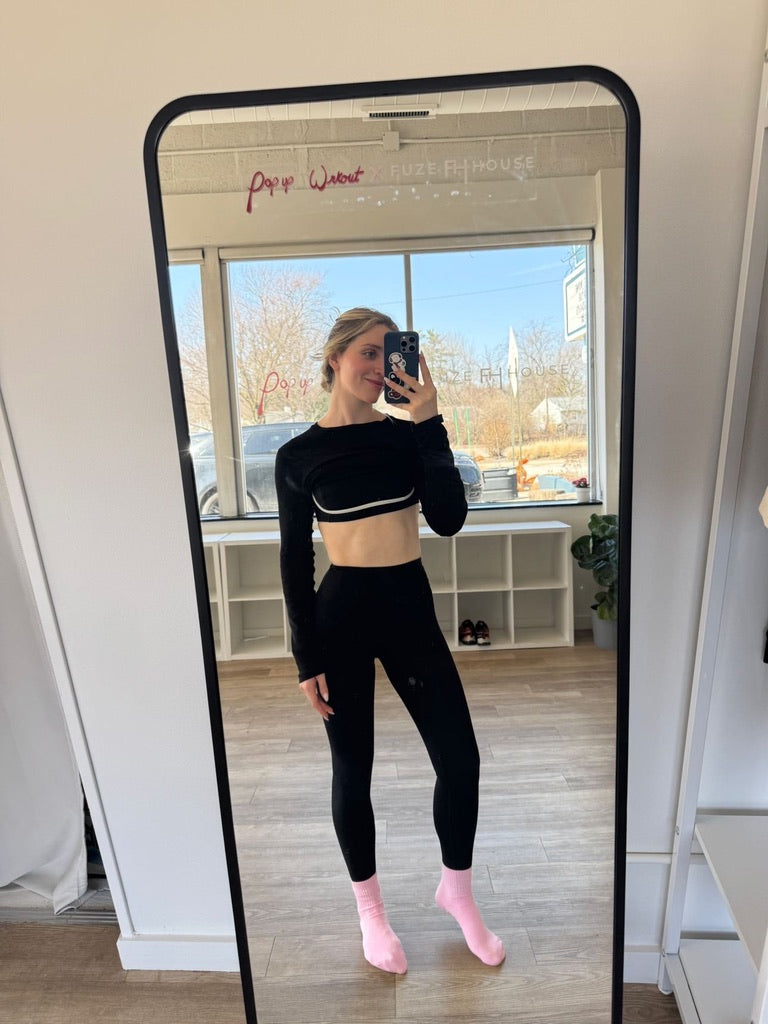 Hear me out, I will fully wear these to pilates but am obsessed with wearing them around the house because they are just cute and make me feel good to be looking so cute. I've never worn grip socks around the house before but ngl these are the best and i am living in them.