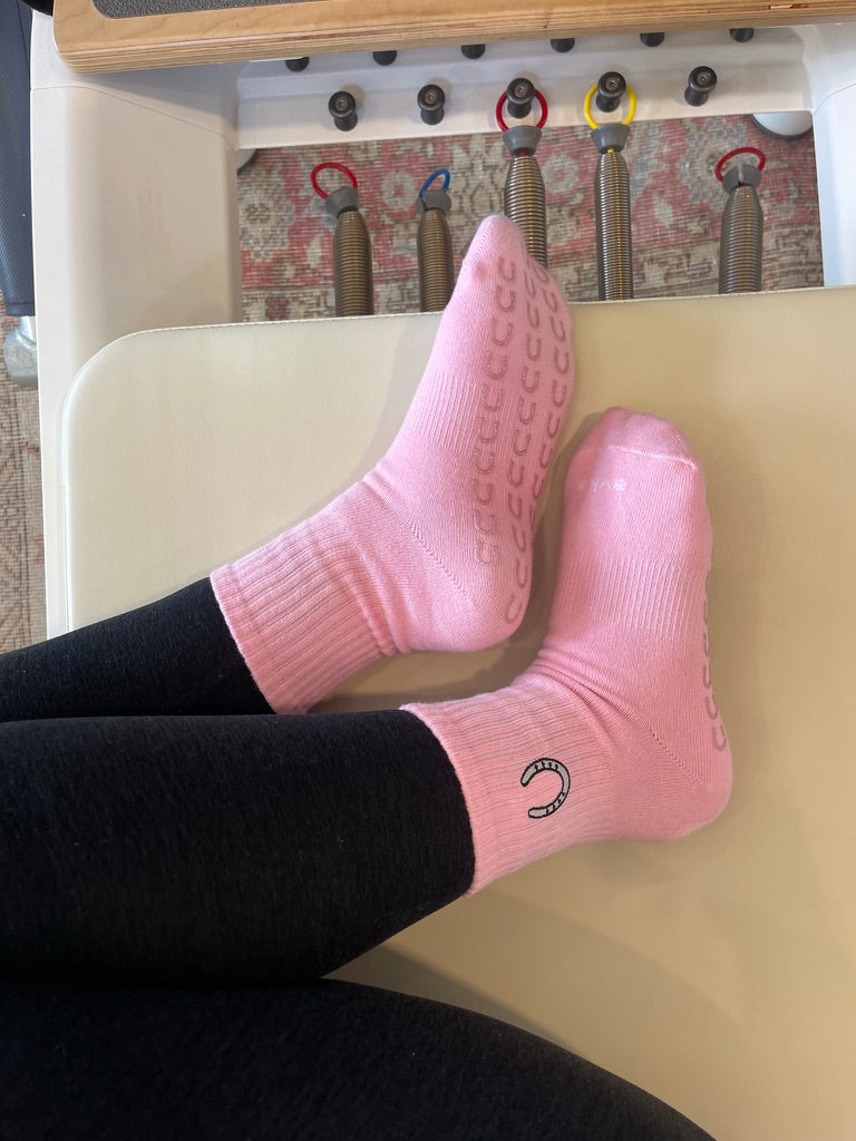 I absolutely love my pink heart Avka Pilates socks! They're not only adorable and super girly, but also perfect for my Pilates and bounce classes. Every time I wear them, I get so many compliments from others. I'm completely obsessed with how cute and comfortable they are!